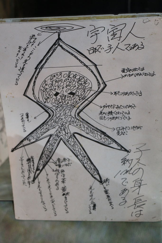 ちなみに、荒井氏の収蔵資料なのであろう、米国の資料とか、あの有名な北海道の藤原青年の描いた宇宙人のイラストのコピーと思しきものなどもあった。