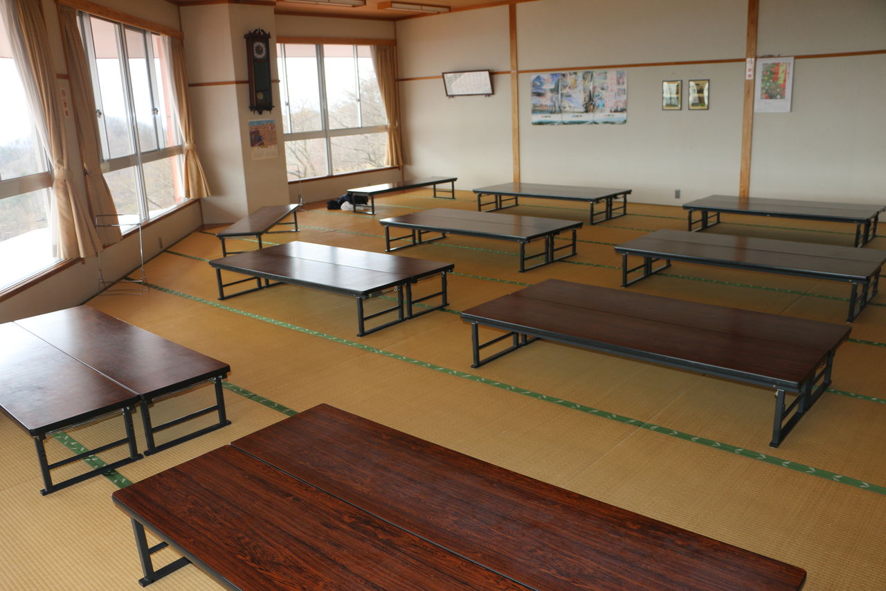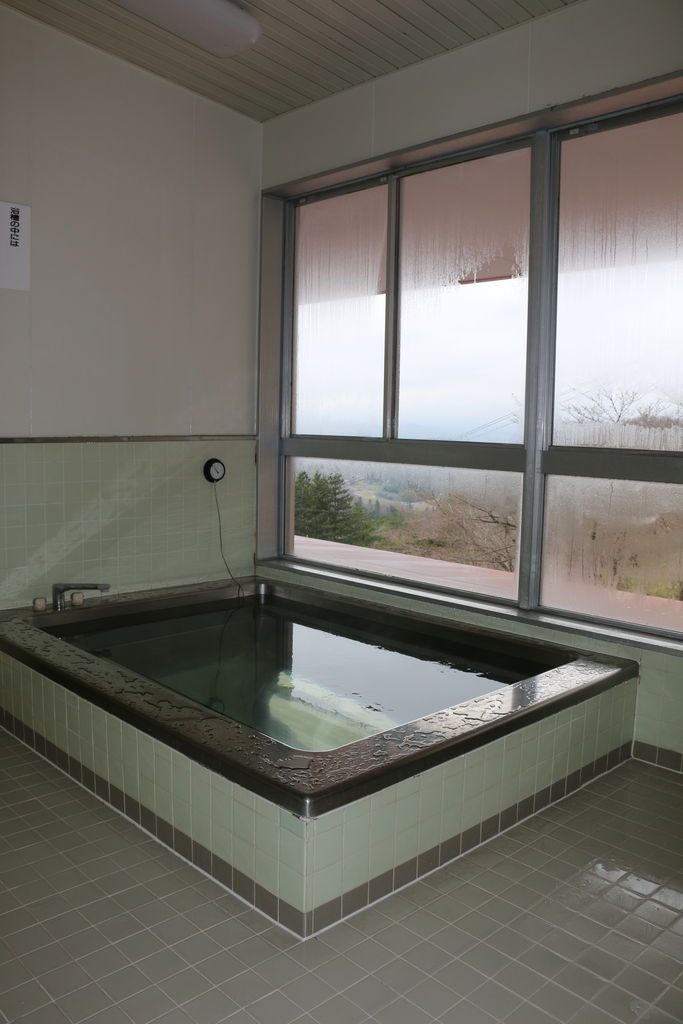 で、一階は以上で一巡するかたちとなるのだが、ご希望の方は二階に上ると風呂と休憩室があり、休むことができる。せっかくなので風呂に入ってきたが、千貫森に登って汗をかいていたこともあり、熱い湯が気持ちよかった。なお、言い忘れたけれども、この日は他の入館者とはまったく遭遇せず、大広間の休憩室でしばしゴロゴロして休んだ。写真は撮り忘れたけれども、畳のヘリには円盤の図柄が入っており、こういう日本人ならではの細かい気配りは大好きである。