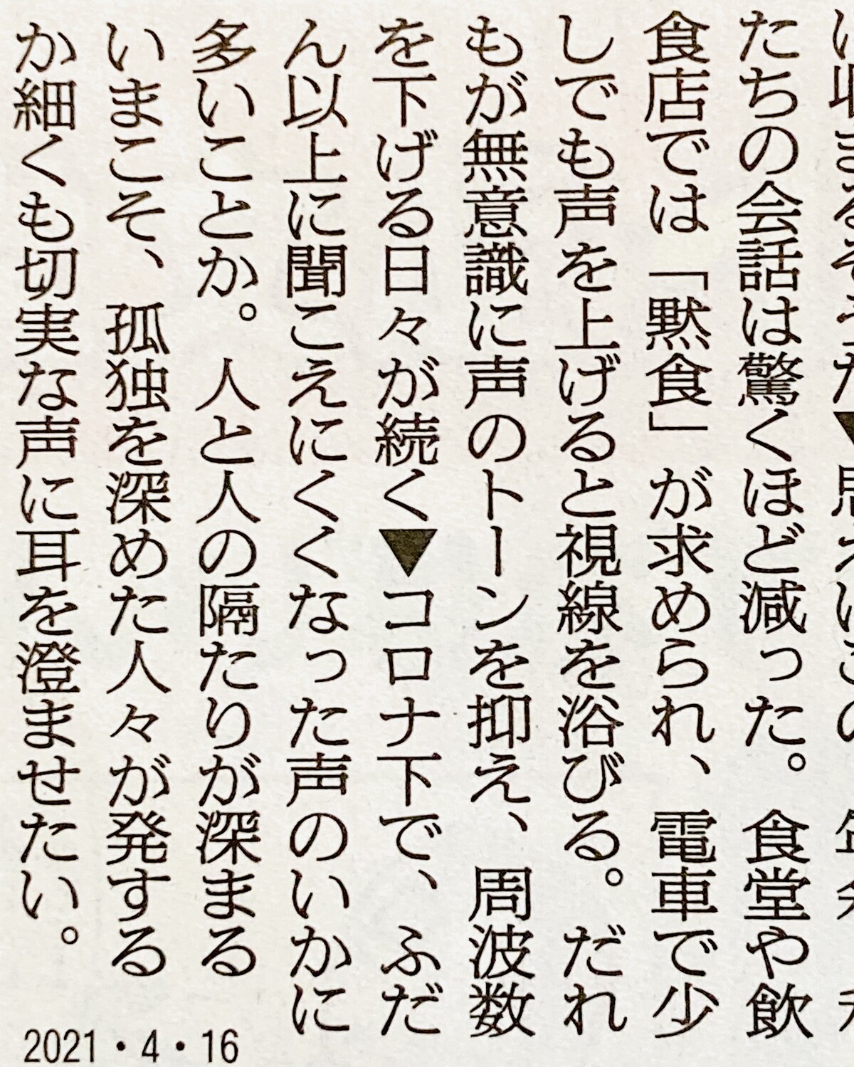 自分の声は誰にも届いていないと嘆いている人はコロナの前だろうが後だろうが常にいて、コロナだから余計に増えているとかそういうことはあるまい。