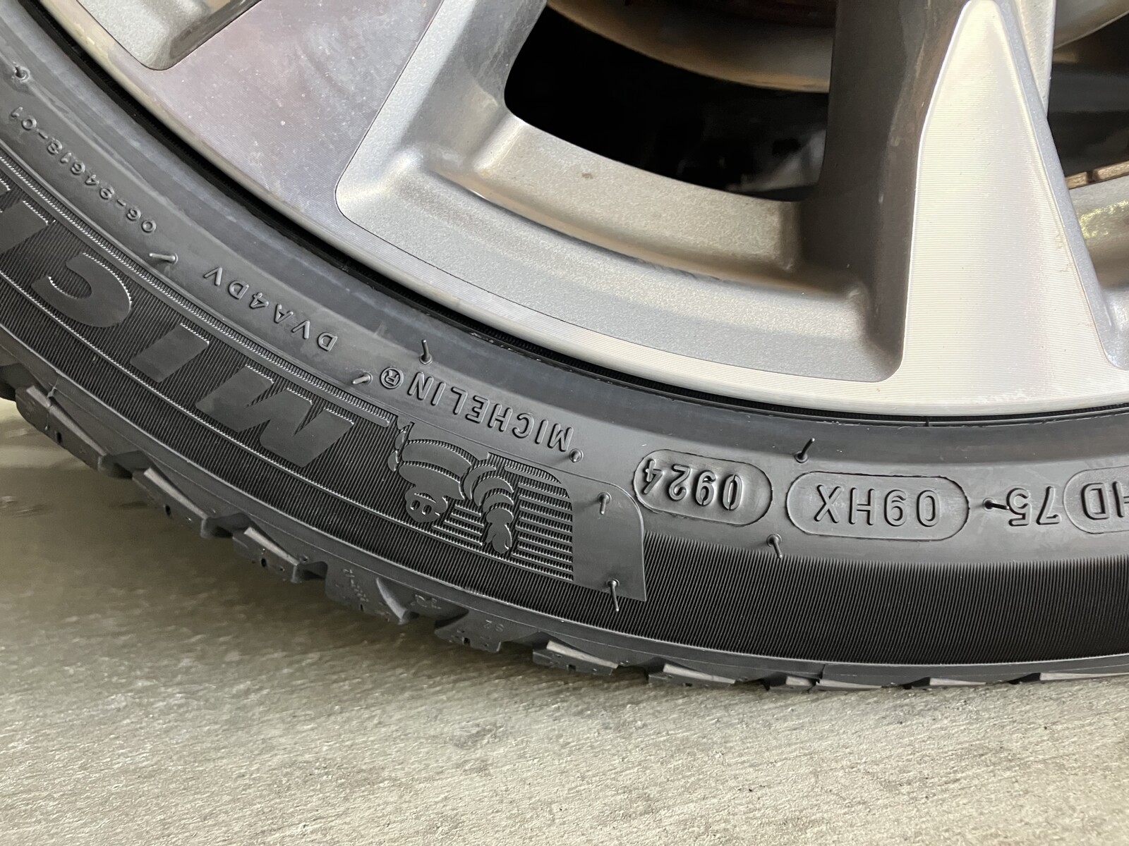 (注)もっともミシュランのタイヤはこの刻印を何故かタイヤの片側にしか入れていないようで、クルマに取り付けられたタイヤをみても2本は「0924」を確認できたが、もう2本は刻印面が内側に入っていて見ることができない。タイヤ業界では、4本買っても製造年月の違うのを一部混ぜてくるケースがあるというので、ひょっとしたら未確認のタイヤだけ古かったりする可能性も絶無ではない。スタンドで最初から4本全部目視しとけば良かったが、まぁ積んであったタイヤはみんな同じに見えたので大丈夫だろう……たぶん(苦笑)。